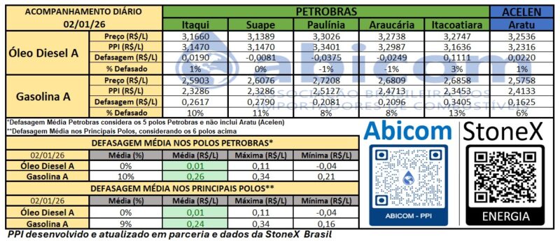 RELATÓRIO ABICOM – PPI X PREÇO DOMÉSTICO – 02/01/2026