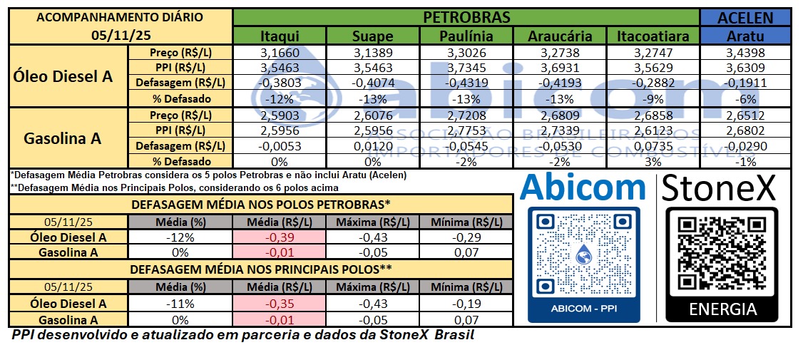RELATÓRIO ABICOM – PPI X PREÇO DOMÉSTICO – 05/11/2025